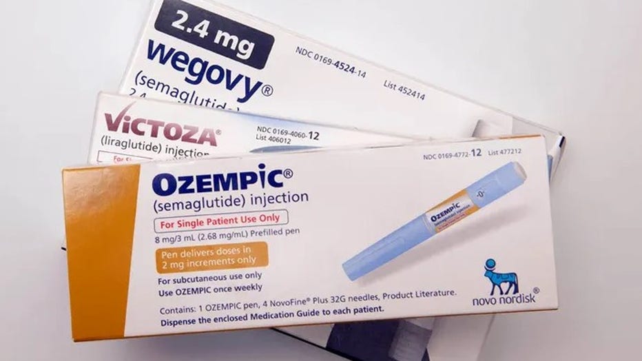 Boxes of the huge 3 injectable prescription weight reduction medications: Ozempic, Victoza and Wegovy. (Michael Siluk/UCG/Universal Images Team through Getty Images/ Getty Images)